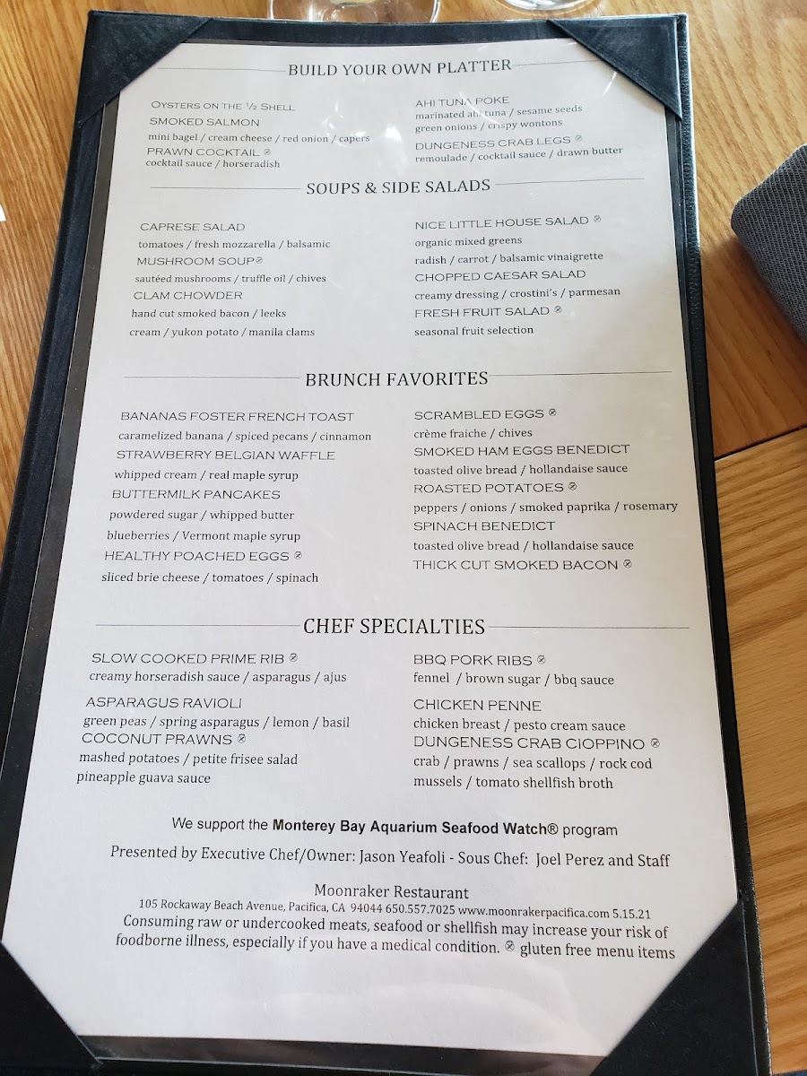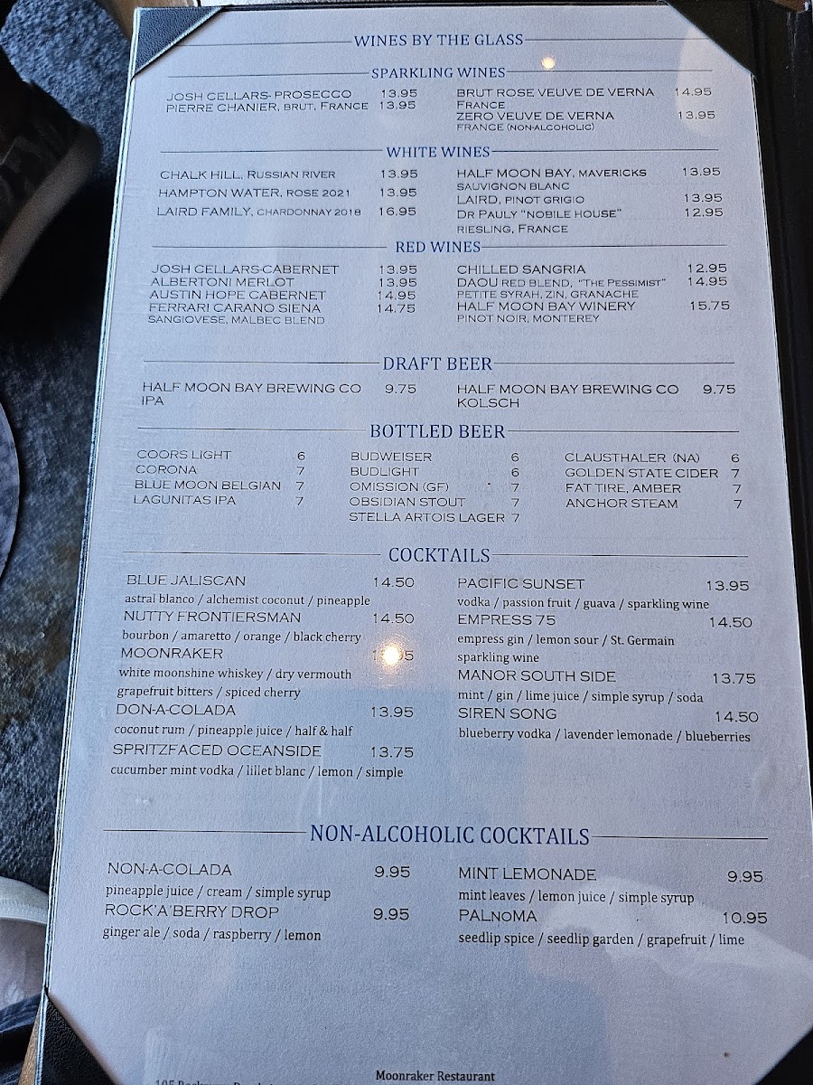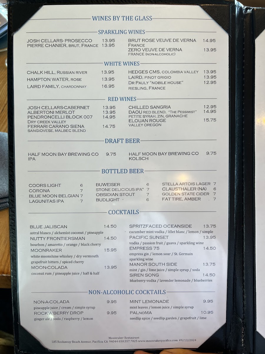 Introducing the culinary gem, Moonraker, nestled at 105 Rockaway Beach Ave in Pacifica, CA. This stunning restaurant pairs breathtaking ocean views with an exceptional dining experience.